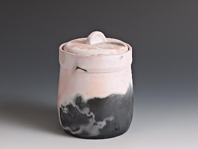 You thought the sake sets were over with but think again. Here is another wood fired sake set. For its placement in the kiln, further towards the back, it got a good amount of wood ash.Just to recap, all of these most recent posts are artwork done by me and photographed by me (with my new lights, 3 Paul C. Buff Einsteins).